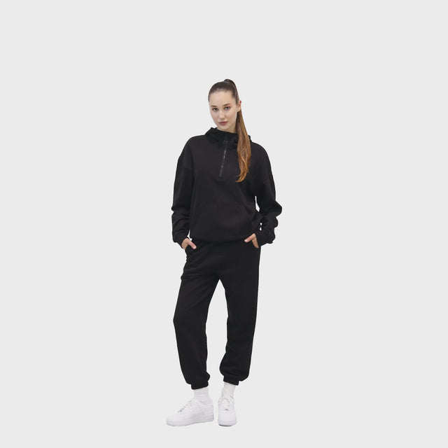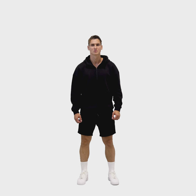 HERO-4220 Unisex Drop Shoulder 1/2 Zip Hoodie - Black